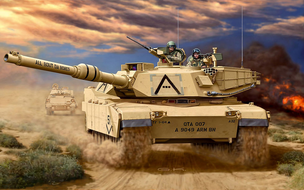 Намного более совершенная прицельная система, лучшая подготовка экипажей и применение боеприпасов из обедненного урана позволяли танкам «Абрамс» поражать иракские машины на дистанции, значительно превосходящих эффективную дальность ведения огня последних (снаряды ЗБМ9, снятые с вооружения (73 год) за много лет до старта производства М1А1, с производства ЗБМ9 были сняты ещё раньше. Тем самым не эффективные против противников для которых они не предусматривались.). M1A1, оснащённые минным плугом, применялись для закапывания траншей, в которых заживо хоронились иракские солдаты.