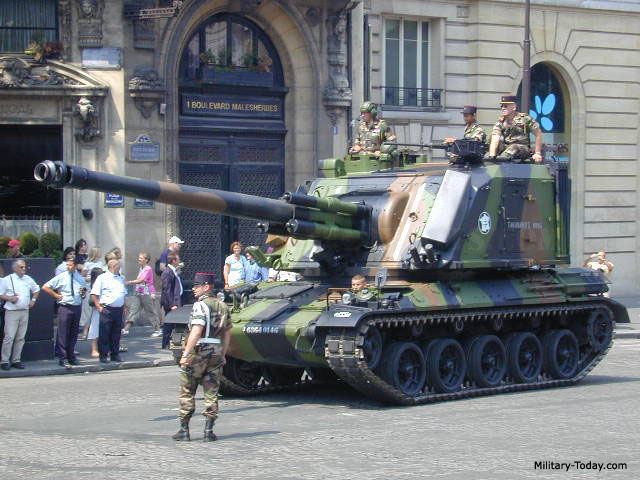 Первую серийную партию самоходок французское командование планировало закупить в 1976 году, но этому помешало ограничение финансирования. В результате эти машины в 1978 году попали в Саудовскую Аравию, которая в 1977 году подписала контракт на закупку 63 единиц. Из них 54 предназначались для боевых подразделений и 9 - для учебных. А вот на вооружение артиллерийских полков Сухопутных войск Франции новая артсистема начала поступать только с 1983 года и тогда же она сменила название на Canon de 155mm Automoteur modele F1 (155-MM самоходная пушка модели F1) или, сокращенно, AuF1. Всего же фирма GIAT изготовила 440 установок этого типа. Из них 273 - для собственной армии (179 в базовом варианте и, начиная с 1988 года, 74 модернизированных установки AuF1 Т), 63 - для Саудовской Аравии, 86 - для Ирака и 18 - для Кувейта.