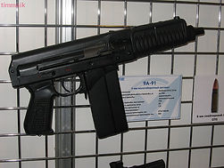 «Автомат 9А-91 - настоящая «рабочая лошадка». Компактный, мощный, с обтекаемыми формами. В лихие девяностые широко применялся в качестве оружия скрытого ношения, при захвате преступников, находящихся салоне автотранспорта или в жилом помещении. Благодаря небольшой толщине, массе, складной рукоятке заряжания часто переносился скрытно, под курткой, за поясом или на боку на ременной петле через плечо. Приклад, в сложенном положении не выходящий за габариты автомата. Легко и быстро переводится из походного положения в боевое и обратно. Супернадежный. Стреляет при любой степени загрязнения. Прицельные приспособления очень четко «очерчены», но из-за малой длины прицельной линии прицельно стрелять более 50м неэффективно, а больше 100 метров - нереально.