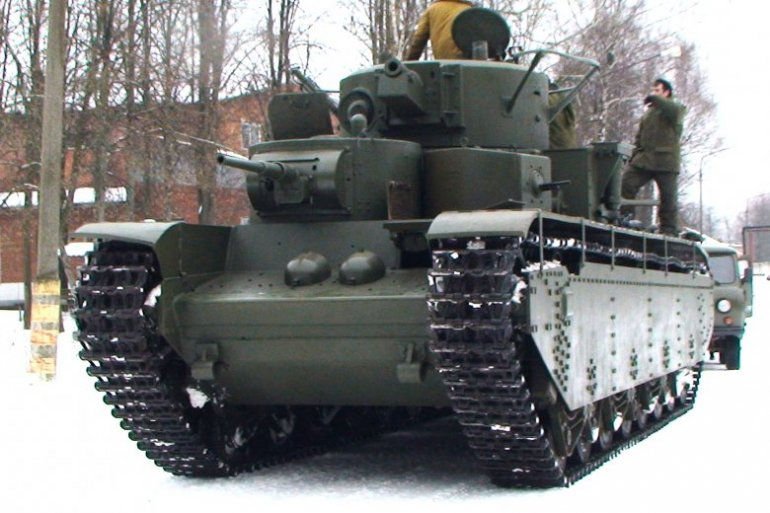 Танк Т-35 был принят на вооружение в 1933 году, серийное производство его осуществлялось на Харьковском паровозостроительном заводе с 1933 по 1939 год. Танки этого типа состояли на вооружении бригады тяжелых машин резерва Главного командования. Машина имела классическую компоновку: отделение управления расположено в передней части корпуса, боевое - в средней, двигатель и трансмиссия - в корме. Вооружение было размещено в два яруса в пяти башнях. В центральной башне кругового вращения были смонтированы 76,2-мм пушка и 7,62-мм пулемет ДТ.